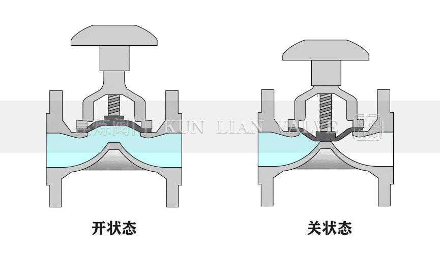 隔膜阀属于调节阀范畴,工作原理是通过改变阀芯与阀座的间隙,改变流体流经阀门的流通阻力,达到调节流量的目的。