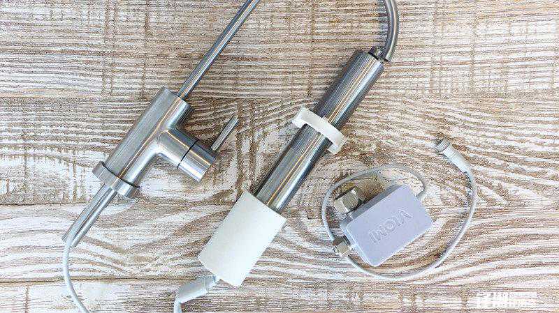 水管采用的是最常见的直饮水管设计,如果在机场酒店看到这种细长形状的水龙头,就意味着打开就能喝了。另外水管采用了和当年小米手机一样的304不锈钢材质,做工还是很扎实的,还加入了可以显示滤芯寿命的黑科技灯环。
