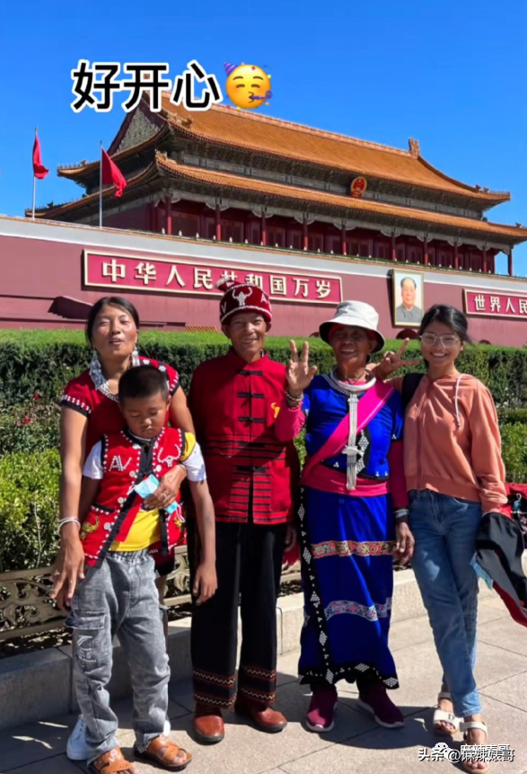 让人动容的还不止于此,她社交平台上点赞最多的是她用自己在学校期间做自媒体赚来的钱,带着家人一起去了北京的天安门。