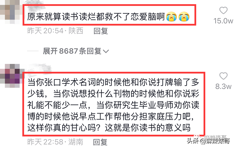 前面不是还在努力学习,考上研究生吗?咋后一秒,就嫁人生孩子去了?那你读书的意义到底在哪里?