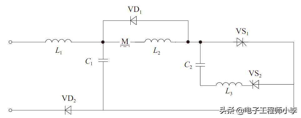 辅助逆导晶闸管VS2和换流元件L3、C2用来关断主逆导晶闸管。VS1导通后,C2中已充的电通过VS1、VS2、L3和C2振荡放电,并且对其进行反向充电。电路中的L1和C1用来防止斩波器与电网电路引起共振。