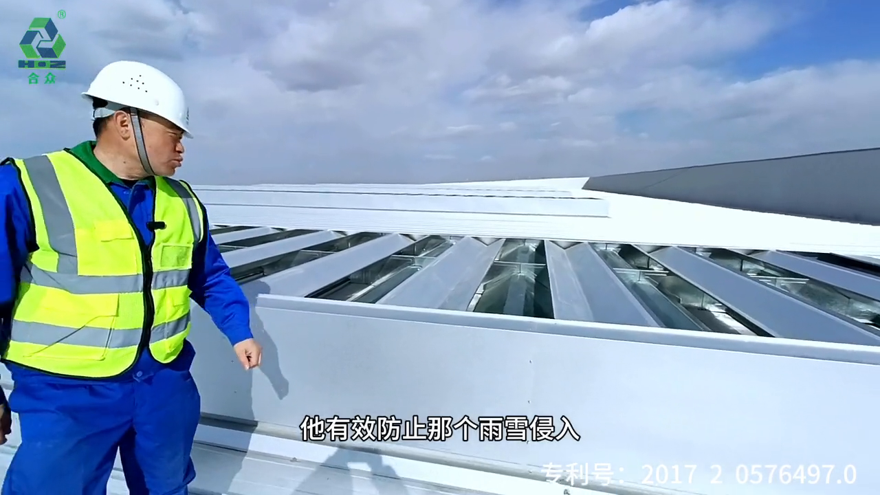 启闭阀分布在采光板的左右两侧,在水沟的上方。启闭阀开启方式采用旋转式,这个位置旋转启闭就开了,有效防止积灰。再一个就是启闭阀的左右两头是有密封折件,有效防止雨雪侵入。天窗连接方式栓接或铆接,采用结构防水。