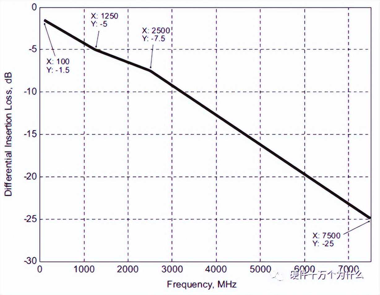 这里所说的频域测试一般指损耗测试、串扰测试等等。损耗的类型一般是指插入损耗、回波损耗。对于很多串行总线都会有一些针对损耗的具体要求,图6是线缆的对插入损耗的要求:
