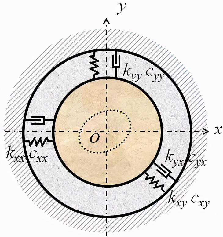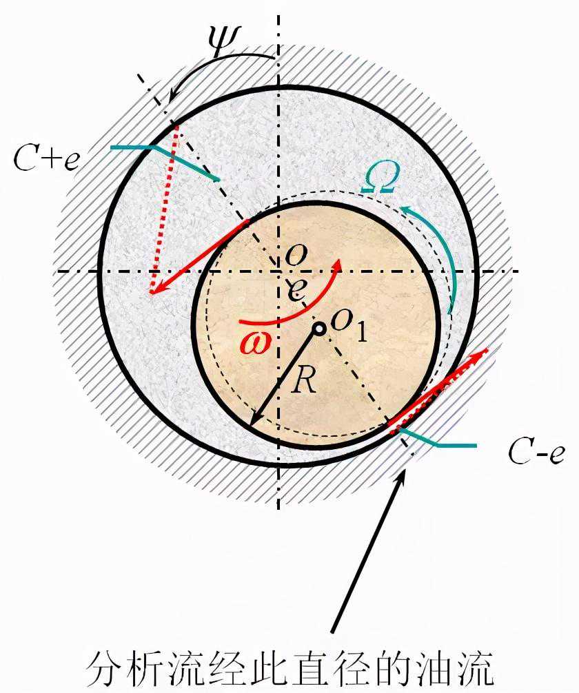 如轴颈绕O作角速度为ω的涡动,就留出空间2Rωe。