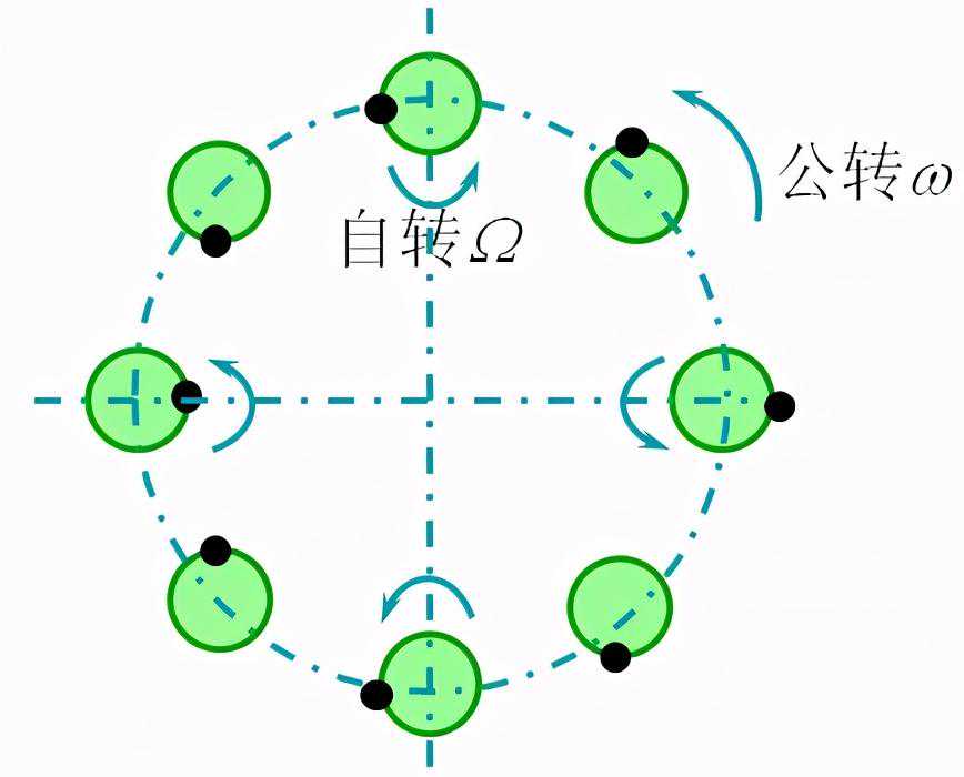 公转(涡动)速度ω为自转速度Ω的一半。