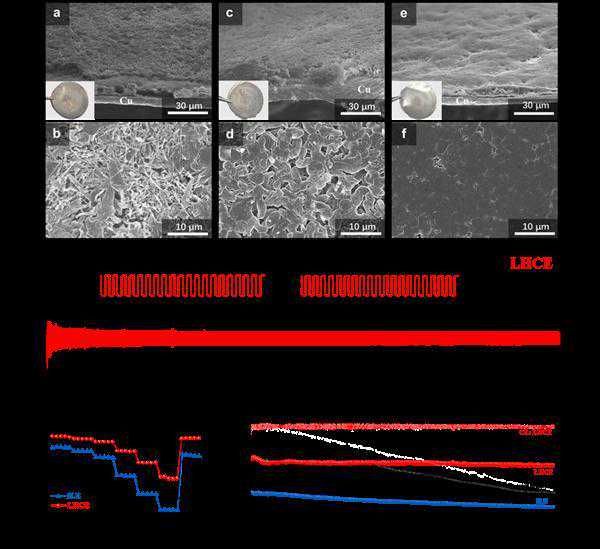 图2.不同电解液中锂金属沉积形貌及锂金属电池电化学性能对比