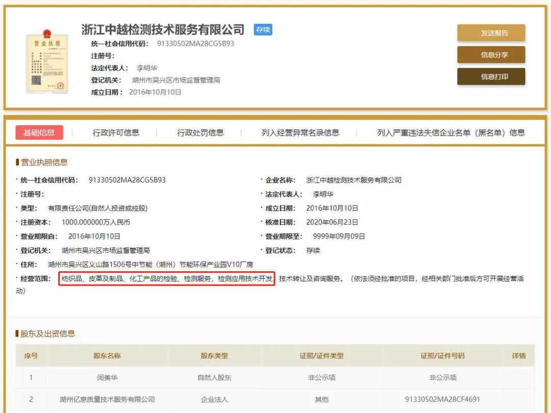 “浙里检”是由政府主导构建的“互联网+检验检测”公共服务平台。在“浙里检”网站查询的结果显示,浙江中越确实在其“检测机构”名单里。