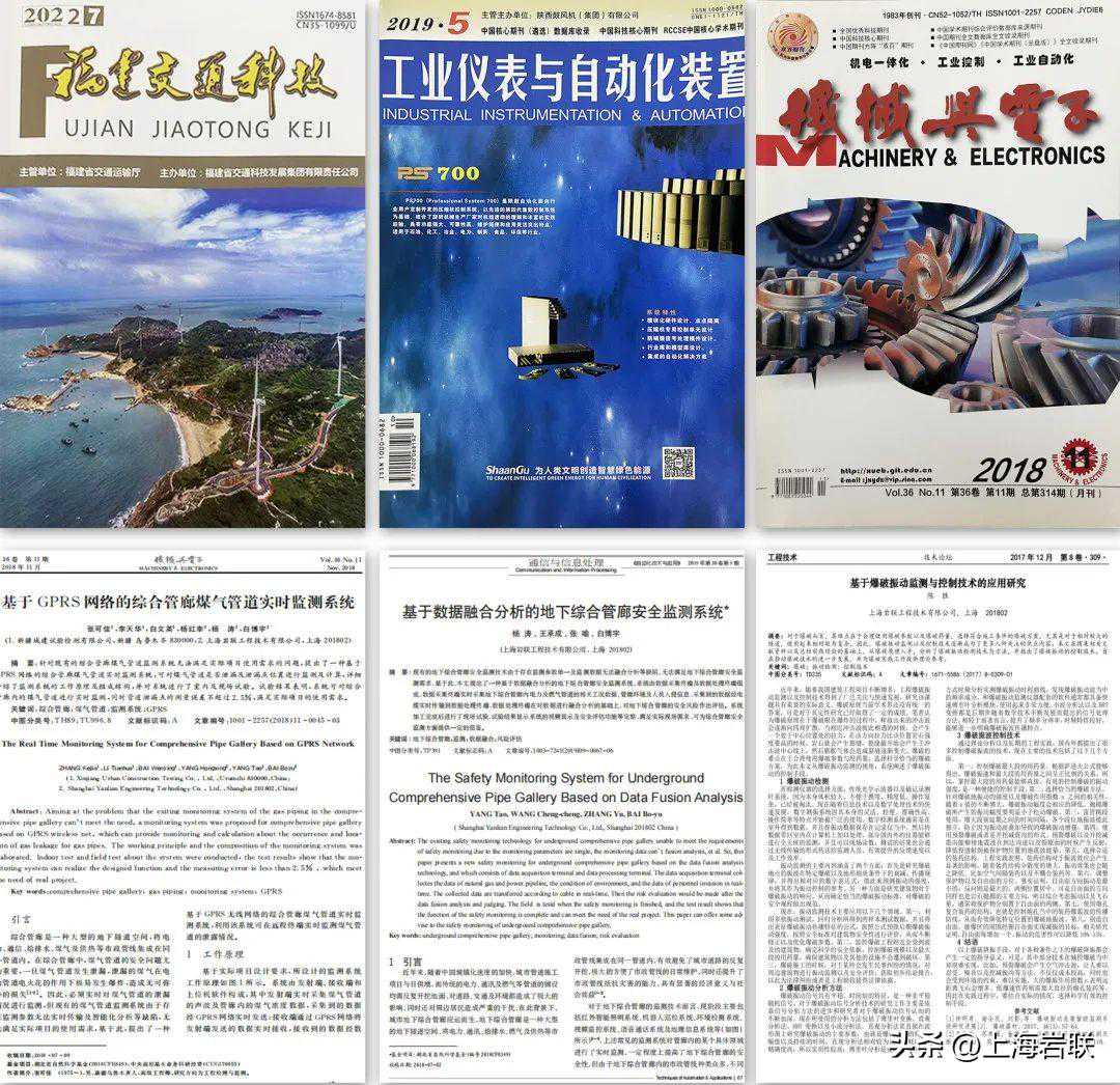 岩联技术联合岩土工程行业专家先后发布《基于爆破振动监测与控制技术的应用研究》、《基于数据融合分析的地下综合管廊安全监测系统》、《基于GPRS网络的综合管廊煤气管道实时监测系统》等期刊累积20余期,并与《机械与电子》、《工业仪表与自动化装置》、《福建交通科技》等期刊建立长期供稿合作,通过与代表性学者探究新技术、新应用、新发展,共同发表高质量期刊,实现双向联动与赋能。