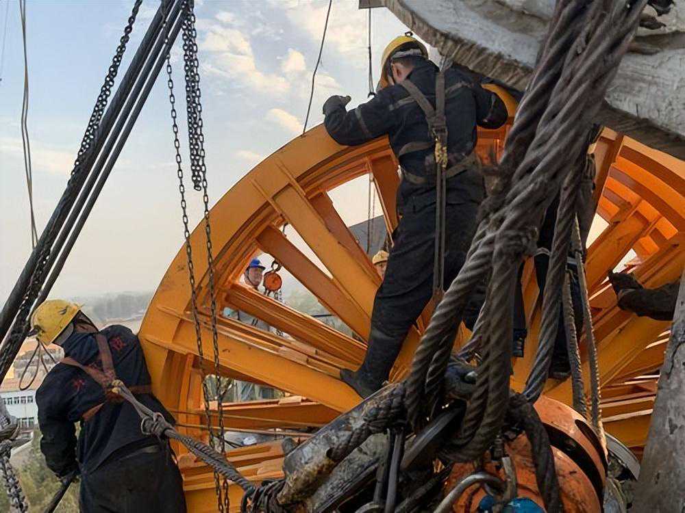 天轮装置的游动轮与天轮轴之间采用滚动轴承替代轴瓦。由于滚动轴承具有承载能力强、摩擦力小、润滑方便及寿命长等特点,采用滚动轴承的天轮装置结构,可以彻底避免轴瓦磨损、轴瓦固定螺栓剪断等故障“,但这种结构最大的缺点是成本较高除上述主要结构改进外,还对局部结构进行了优化,使其能够更好地平稳安全运行。比如:轴瓦固定螺栓安装时涂乐泰防松胶,可有效防止螺栓松动;加大辐条规格或增加数量,提高天轮装置整体结构强度,改进卡箍的形状,保证卡箍能够全部或局部挡住轴瓦螺栓,避免轴瓦螺栓退出而被卡箍切断,增设清洗轴瓦的放油口,便于对轴瓦清洗,也可采用锌基合金轴瓦代替轴瓦,可大大降低制造成本等。