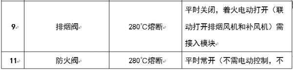 4、联动程序:平时280℃排烟阀常闭,70℃防烟防火阀常开,进行排风。火灾时中控室联动主机控制70℃防烟防火阀关闭,同时控制280℃排烟阀开启,进行排烟,当温度达到280℃,排烟机吸风口处280℃常开排烟防火阀熔断,联动风机停止。