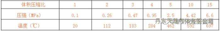 绝热压缩产生的高温使可燃物燃烧,绝热压缩后温度与压力的关系。
