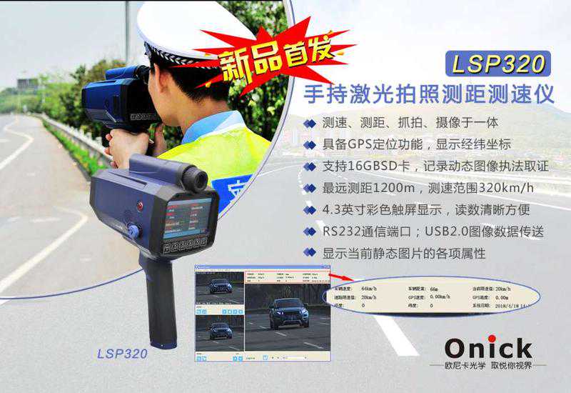 4、取证能力好:激光测速仪的取证能力远远大于雷达测速仪,因而受到全世界广泛的认可和推广,例如欧尼卡LSP320手持拍照激光测速仪就可以一边测速,一边拍照,把拍到的照片保存在仪器中,便于取证。