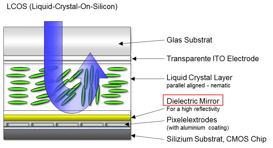 为了提高光的利用率,在调制的过程中将光能的损失降到最低,滨松的LCOS产品均为反射式。这里光利用率就定义为光经过LCOS液晶面反射的反射率。定义为:平均反射光强占入射光强的百分比。反射率的测试方法如下: