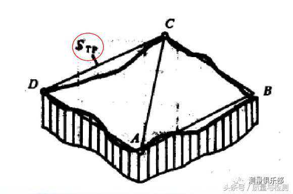 12三远点平面Stp(threepointsplane):通过实际被测平面上相距最远的三个点(下图中A,D,C)的理想平面Stp.