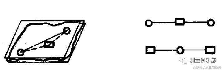 实际被测平面上有两点与两个平行包容平面之一相接触,还有一点与另一包容平面相接触,且该点在另一包容平面上的投影在由前两点连接而成的直线上,见下图所示: