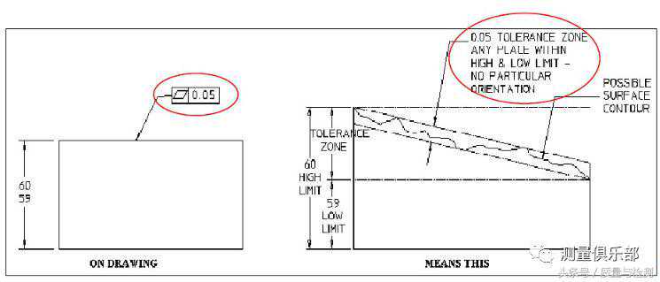 6面度误差(flatnesserror):实际被测平面相对理想平面的变动量,理想平面的位置应符合最小条件.见Figure1
