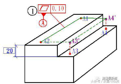 3:下图中基准A由A1,A2,A3,A4四点构成,测量A基准面(既Dim121量测方法