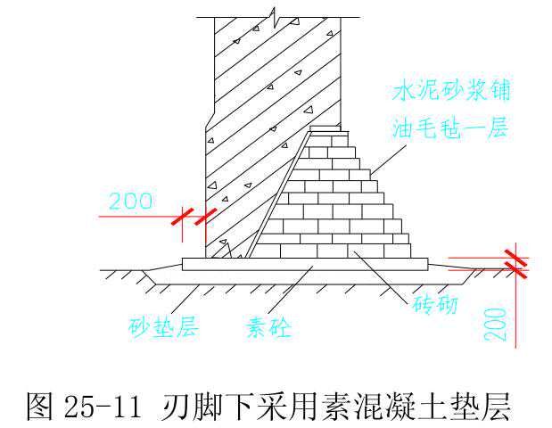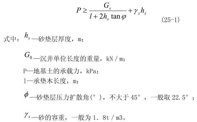 同时,为了抽除承垫木的需要,砂垫层的宽度应不小于井壁内外侧各有一根承垫木长度。