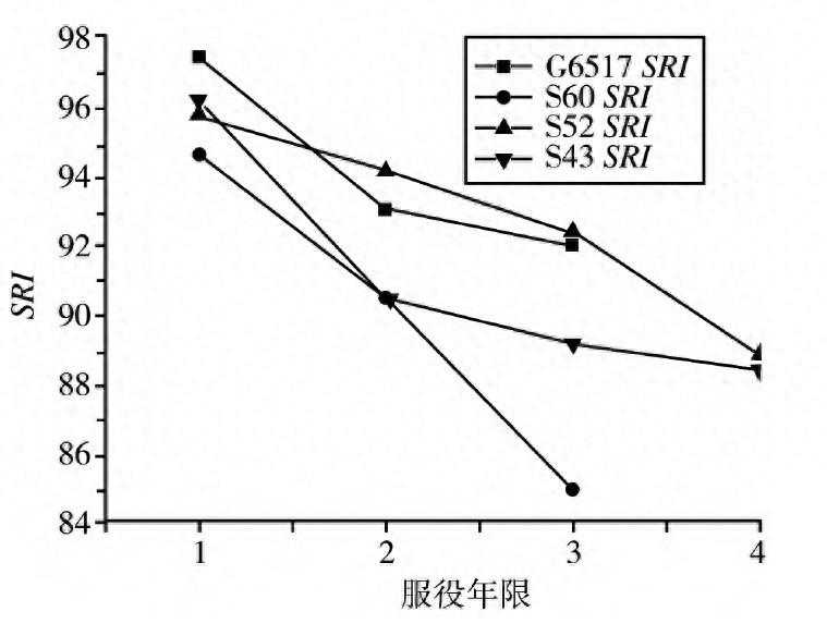 图1各路段路面抗滑性能指数SRI衰减趋势下载原图