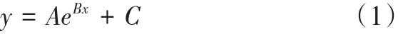 式(1)中:y为抗滑性能指标;x为轴载作用次数;A、B、C为常数项,且A、C0,B0。