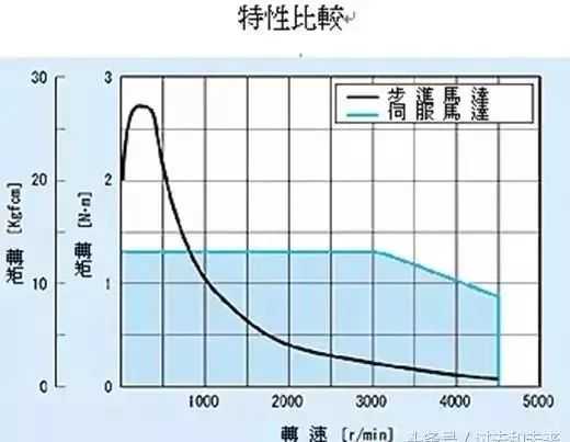 步进电机的输出力矩随转速升高而下降,且在较高转速时会急剧下降,交流伺服电机为恒力矩输出。