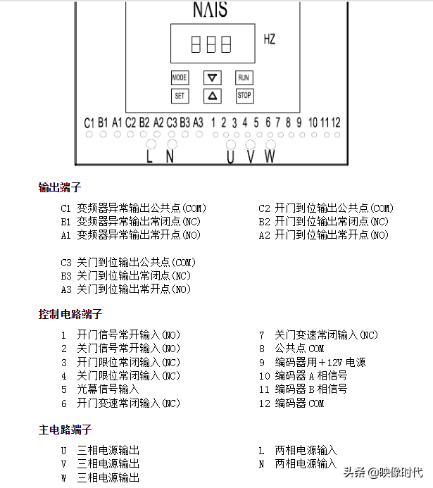 如上图所示例:控制电路端子1和8短接可以开门直到限位