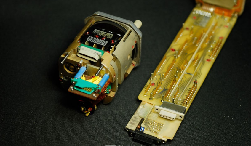 可以看到模块上基本都是陶瓷封装的小规模集成电路,生产于1980年左右。此时的航电设备正处在机械式到电子的过渡时期。由于显示技术和通讯总线技术还不成熟,此时的仪表往往采用模拟信号,由电路处理后再通过一些特殊的机电显示器件,以比较接近传统机械式仪表的指针/转轮等方式呈现。