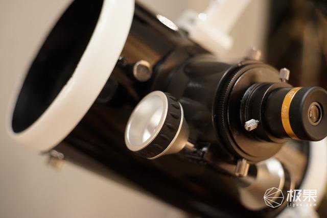 镜筒上方还有一个相机托架,可以转接相机,某些情况下可以替代寻星镜。并且还可以安装手机支架,在配上google的星图之类的APP可以更加方便的寻找行星观测。