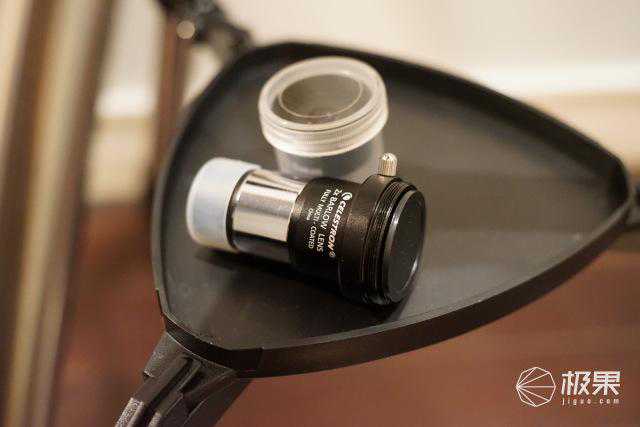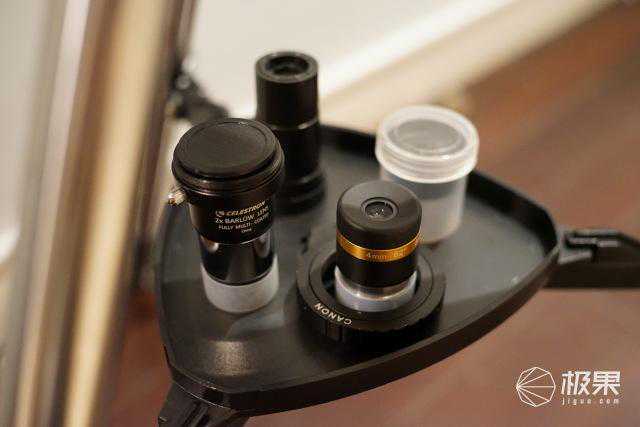 Delux130EQ自带了高中低的三套目镜。分别是4mm(162.5x)、10mm(65x)、20mm(32.5x)。用于观看不同物体细节。本身都有保护盒,目镜本身要是有划痕会非常影响观看,所以平时都需要妥善保护。如果是摄影爱好者,还可以自己选配转接环和巴洛镜,接下来的拍摄我用的是2x的巴洛镜和佳能转接环(一开始是用的sony转接环,但是到手发现并不适用于sonya7全画幅机型)