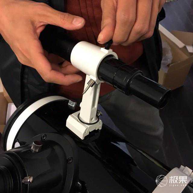 寻星镜的视野比较广,所以一开始用寻星镜先确定到大致的位置,让月球保持在寻星镜的十字准星中央,然后固定好纬度调节螺丝。