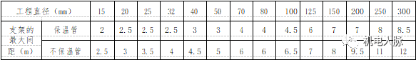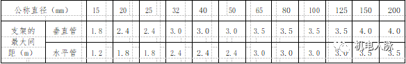 4)钢管水平安装的支、吊架间距不应大于下表规定。