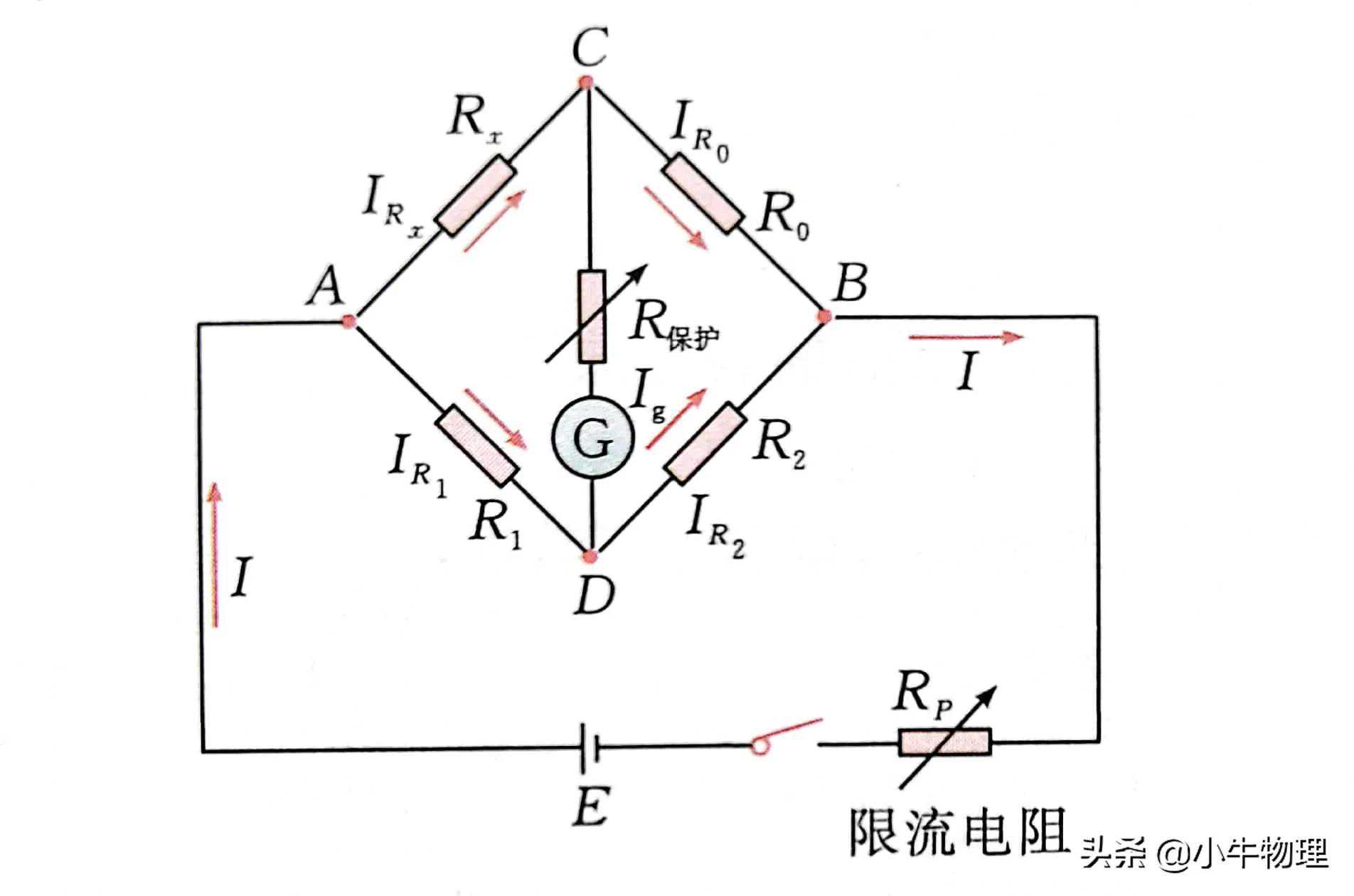 Rp为电阻较大的可变电阻,在电桥不平衡时取最大电阻起限流作用以保护电流计;当电桥接近平衡时取最小值以提高电流计的灵敏度.