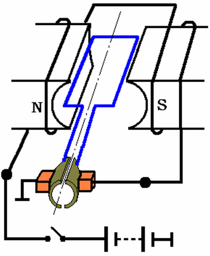 6.换向片随线框转动,电刷固定不动,从而保证固定的旋转方向;
