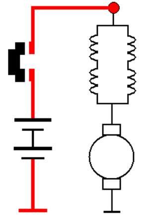 继电器线圈通电,触点闭合;吸、保线圈通电,引铁前移-电动机电路接通,驱动齿轮与飞轮啮合。
