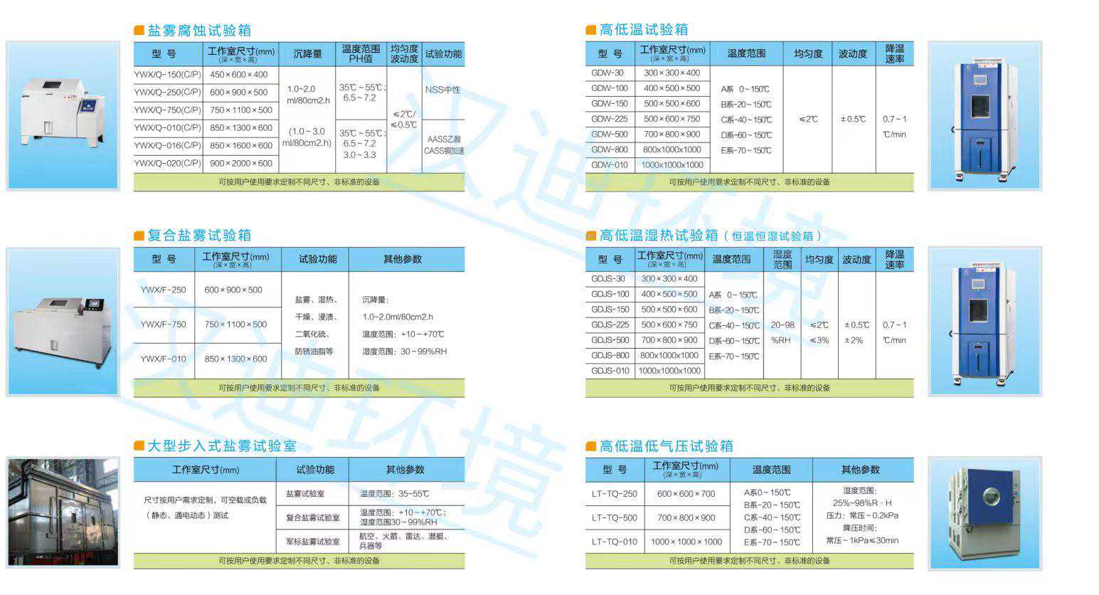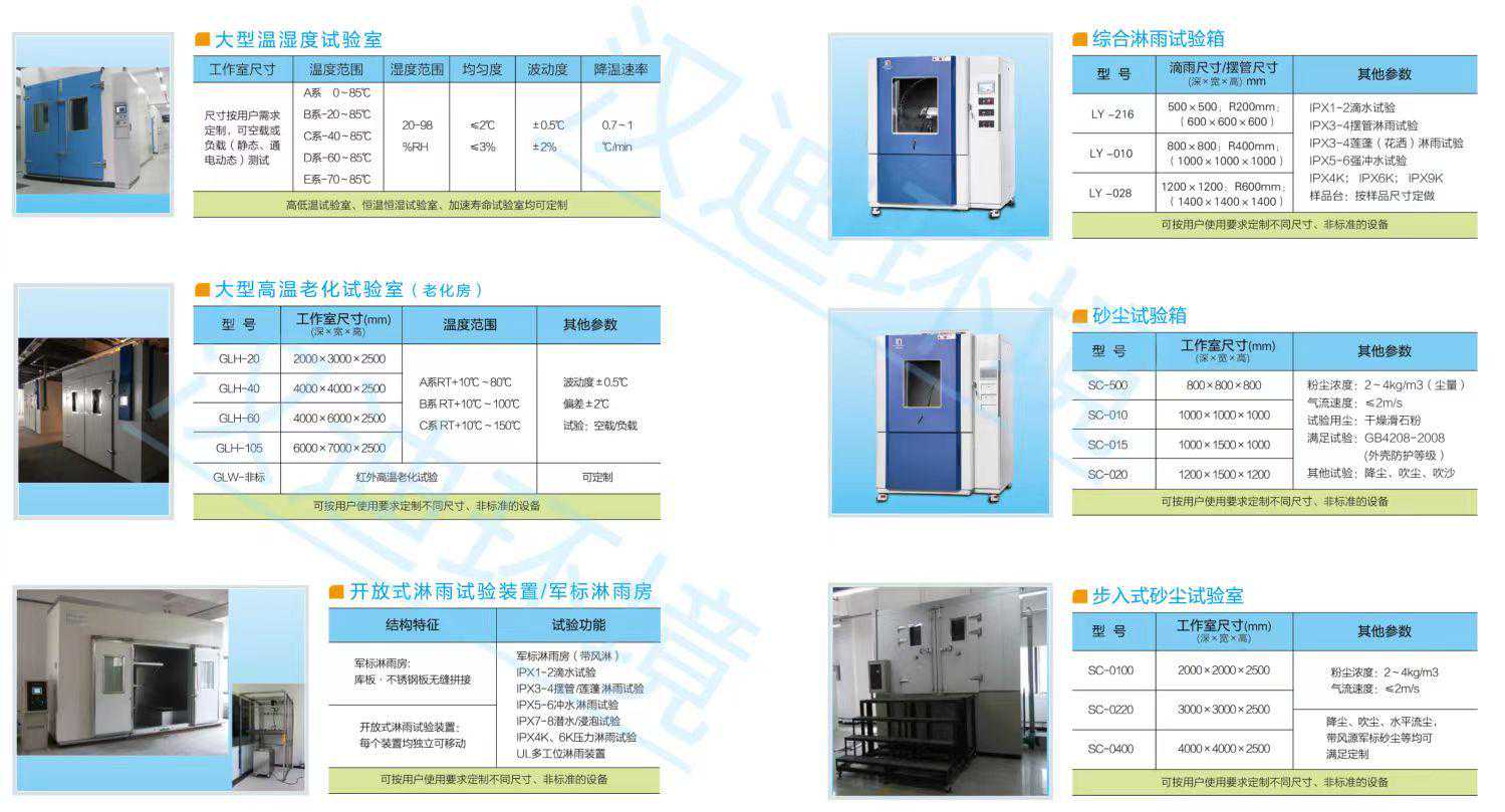 5.主营产品:公司坚持“以人为本”,聚集了行业内一批专业设计及制造人才,集设计、制造特殊规格加热设备的成熟经验和安装能力于一身;公司先后开发出具有自主知识产权:高温试验箱、高低温试验箱、盐雾试验箱、恒温恒湿试验箱、综合环境模拟试验机等产品。