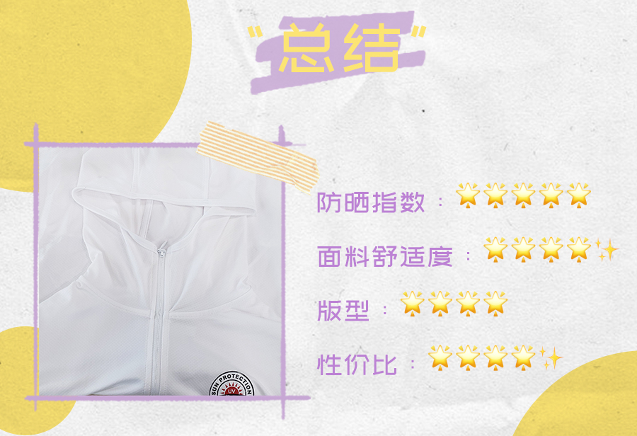 本着良心真实测评,将从防晒力度值、面料舒适度、版型、性价比四个方面来展开角逐。