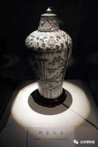 为国宝级文物,是现存惟一一件带盖子而且保存完整的洪武釉里红梅瓶。此梅瓶造型优美,器型完整无缺,岁寒三友指松树、绿竹、梅花三种常绿植物,象征着高洁的志向。