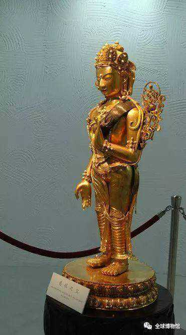 这尊佛像由纯度很高的黄金制成,通高88厘米,且佛身与莲座皆装饰华丽,嵌珍珠宝石,雍容华贵,尽显皇家气派,应是清王朝全盛时期由宫廷的能工巧匠制作而成,代表了清代宫廷造像工艺最高水平。