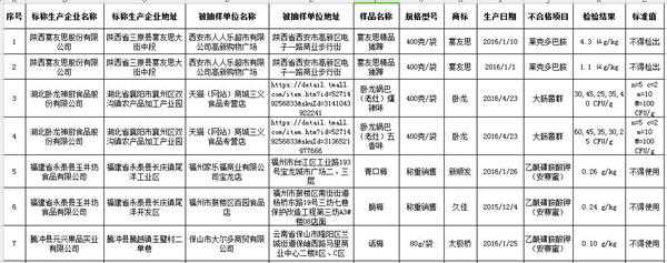 名单显示,3批次的休闲食品因检出乙酰磺胺酸钾(安赛蜜)被通报。分别为福建省福州市鼓楼区百园食品店销售的标称福建省永泰县玉井坊食品有限公司生产的脆梅、福建省福州家乐福商业有限公司宝龙店销售的标称福建省永泰县玉井坊食品有限公司生产的青口梅,云南省保山市大尔多商贸有限公司销售的标称腾冲县元兴果品实业有限公司生产的话梅,