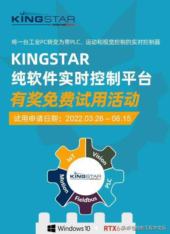 为了让广大用户对KINGSTAR有更深入的了解和体验,控制工程网联合IntervalZero举办KINGSTAR试用活动,让您亲身体验到这款软件控制产品的优势和价值。