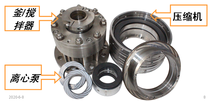 5、按使用的设备划分:泵用机械密封,釜用机械密封,离心压缩机用机械密封。