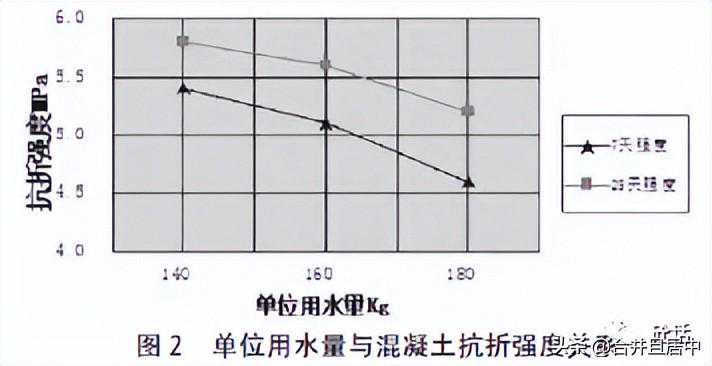 在水胶比一定的情况下,单位用水量的大小直接影响着混凝土的工作性能,并且对混凝土的强度、耐久性、耐磨性也有影响,如图2所示。