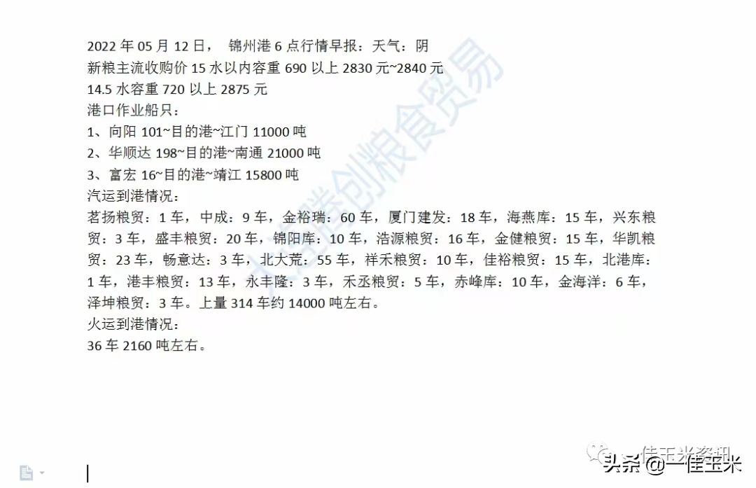 2022年05月12日星期四8时止:锦州港