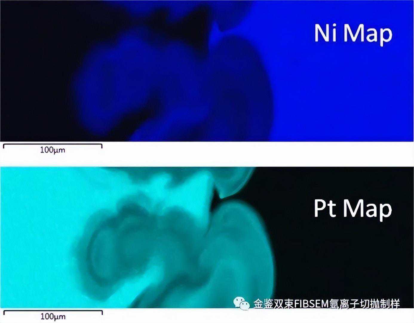 铂和镍有相同的晶体结构,晶格常数只有10%的差异,因此基于传统的EBSD难以鉴别。Aztec系统通过衍射带宽度能够将其有效区分。