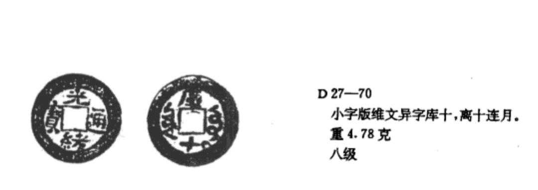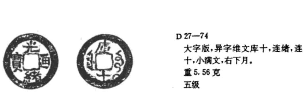 那么这个钱币有什么特点呢?说这两个钱币之前,先给大家看一看这个光绪通宝库十背下大月泉谱中是怎么写的!