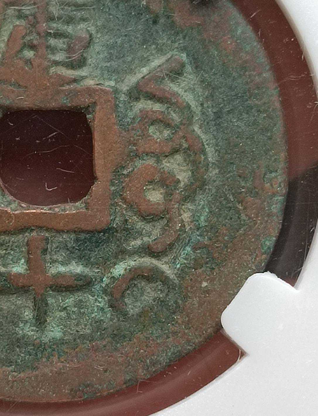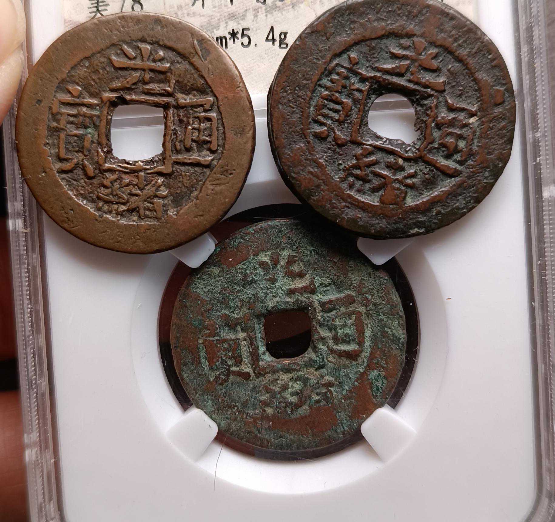 大家好,我是新疆红泉堂,今天和大家聊一聊新疆红泉的版别,和大家说一个很多人不知道的少见版,光绪通宝库十背下大月!光绪通宝库十草书维文一共三种,分别是草书维文光背版,草书维文小月版和草书维文大月版,光绪库十背下大月这个版别和同治库十背月版式一致,背面右下侧的月亮非常大,大家先来看一看这三种钱币合影。