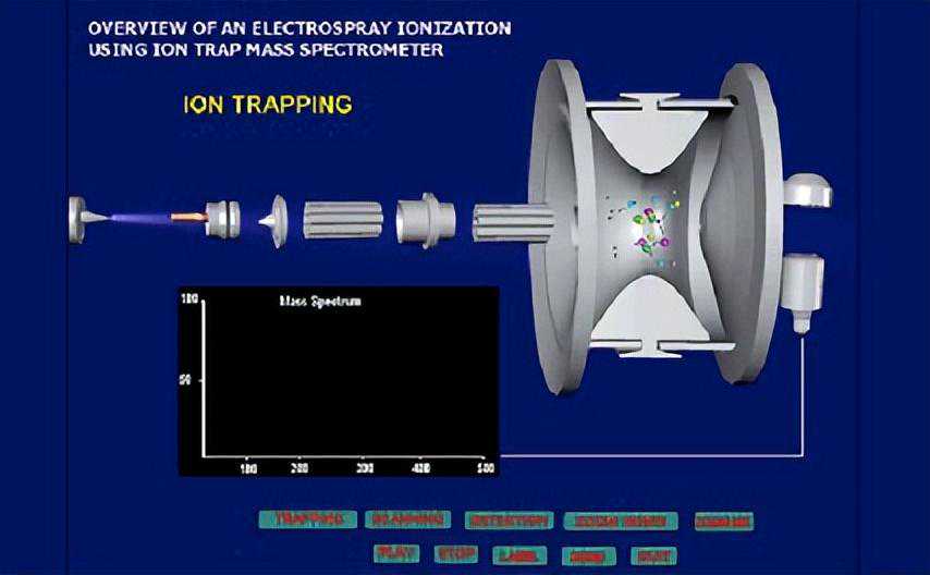 GC-MS(Gaschromatography-massspectrometry)全称气相色谱-质谱联用,简称气质联用仪。被分析样品经毛细管柱分离,进入离子源。采用电子电力标准配置(EI),产生正离子,在推斥、聚焦、引出电极的作用下将正离子送入四极杆系统。四极杆在高频电压与正负电压联合作用下形成高频电场,在扫描电压作用下,只有符合四极场运动方程的离子才能通过四极杆对称中心到达离子检测器,再经离子流放大器放大,产生质谱信号。得到了质谱图,通过解释谱图或进行谱库检索以识别未知样品的组成。