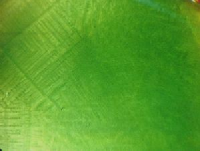 01-1、仿玉石玻璃的肉眼观察:流动构造,刻意添加的杂质,均匀无结构。放大观察有气泡。结构马赛克结构蕨叶结构