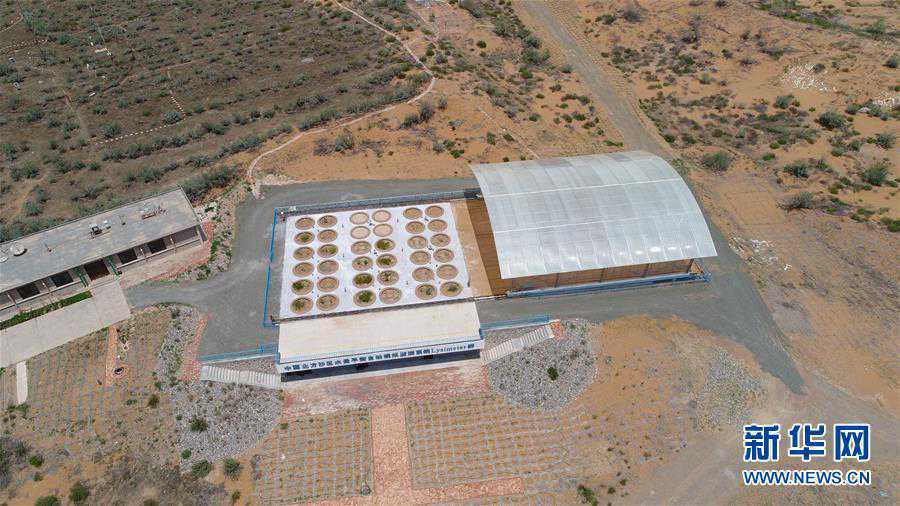 7月3日无人机拍摄的中国北方沙区水量平衡自动模拟监测系统—蒸渗仪群。新华社发(杨昊天摄)