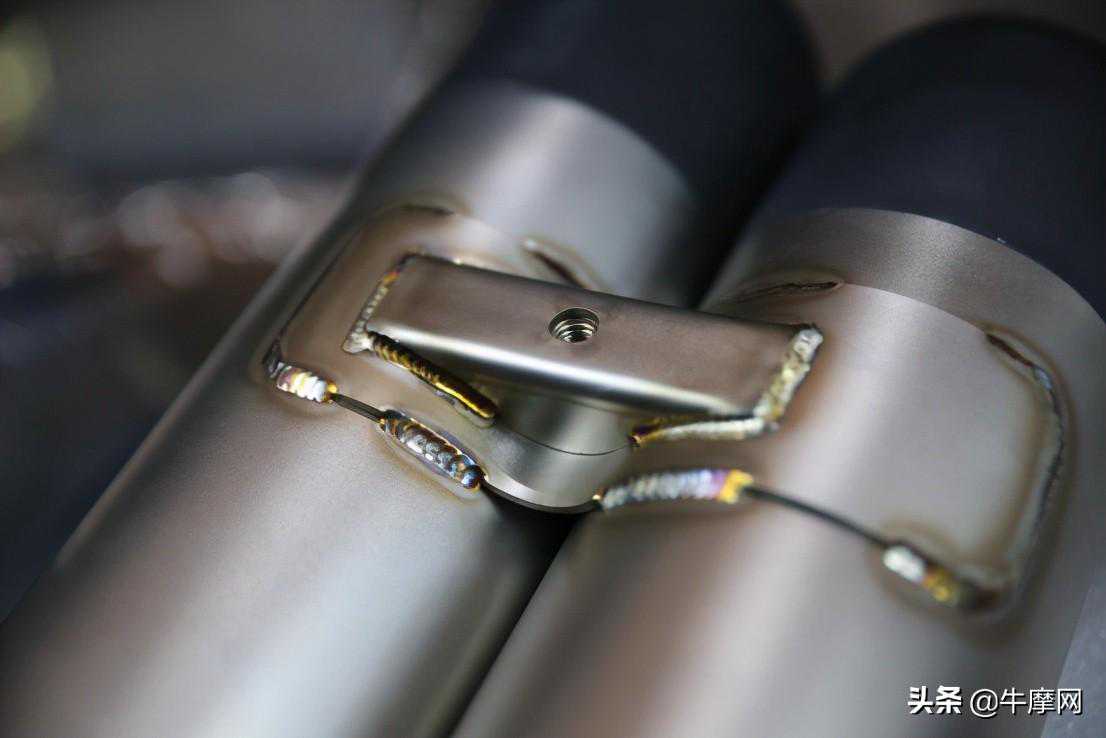 排气管和锁紧卡扣均采用的不锈钢材质,可以说质感在同级相当优秀,焊接出鱼鳞的形状充分体现出零部件的工艺水平。